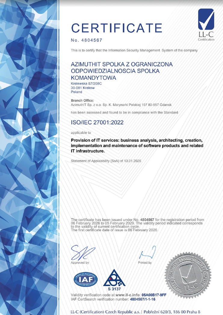 At Smart4Aviation Group, security is not an afterthought - it is embedded in how we build, deploy, and support solutions for the aviation industry. The ISO/IEC 27001:2022 certification of AzimuthIT reinforces the trust our partners place in us and marks another important step in delivering long-term value through operational excellence and resilience.